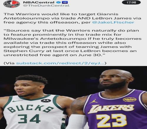 什么?太大胆了。 名记Fischer:勇士计划今年夏天交易来字母哥,并在自由市场签下詹姆斯......